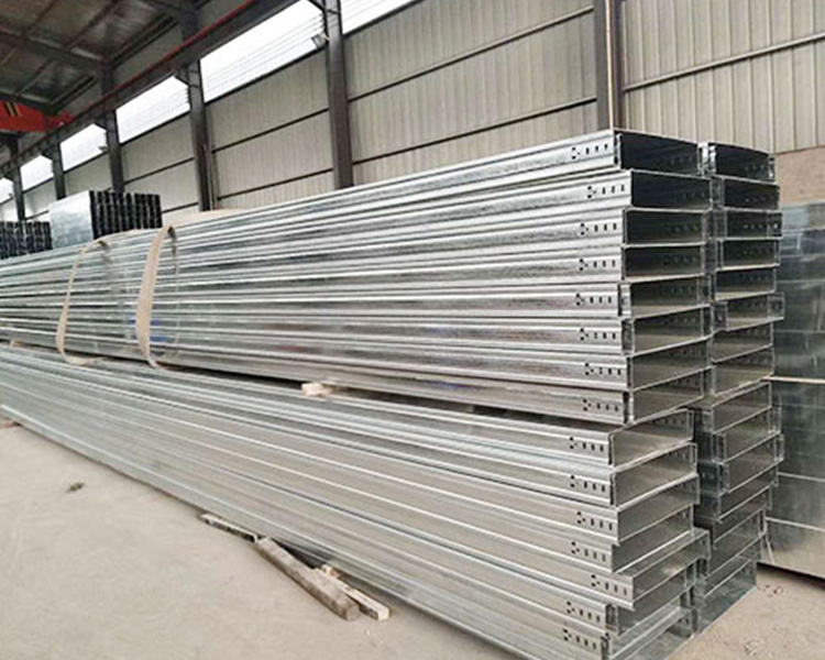 4)需要屏蔽電磁干擾的電纜線路.或有防護外部影n向如戶外日照。腐蝕性液體、易燃粉塵等環境要求時,應選用無孔托盤式電纜橋架。